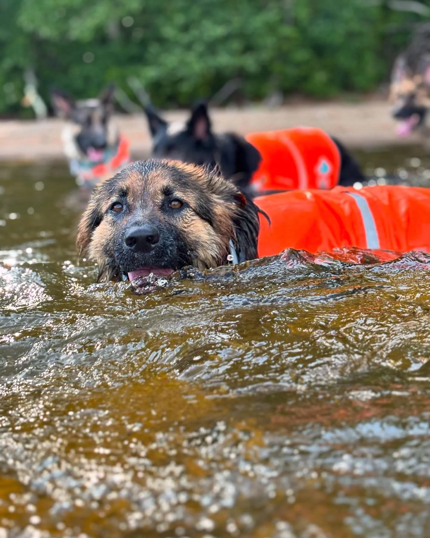 Our own personal pack hikes alongside us and plays a big role in setting the tone for every outing. They help create a balanced, calm energy that new dogs can learn from and yes, they’re also the first to jump in the water or pose for a photo op.